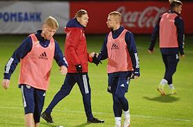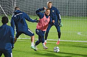 Спорт Открытая тренировка сборной России по футболу, посвященная подготовке национальной сборной к отборочным матчам чемпионата мира 2022 года со Словакией и Словенией в УТЦ "Новогорск".