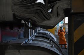 Акционерное общество "РУСАЛ Красноярский алюминиевый завод". Электролизный цех. Рабочий в защитном…