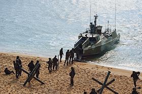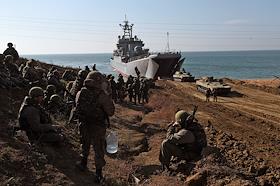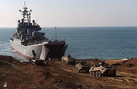 Учения по высадке морского десанта на необорудованное побережье в Крыму на полигоне Опук.