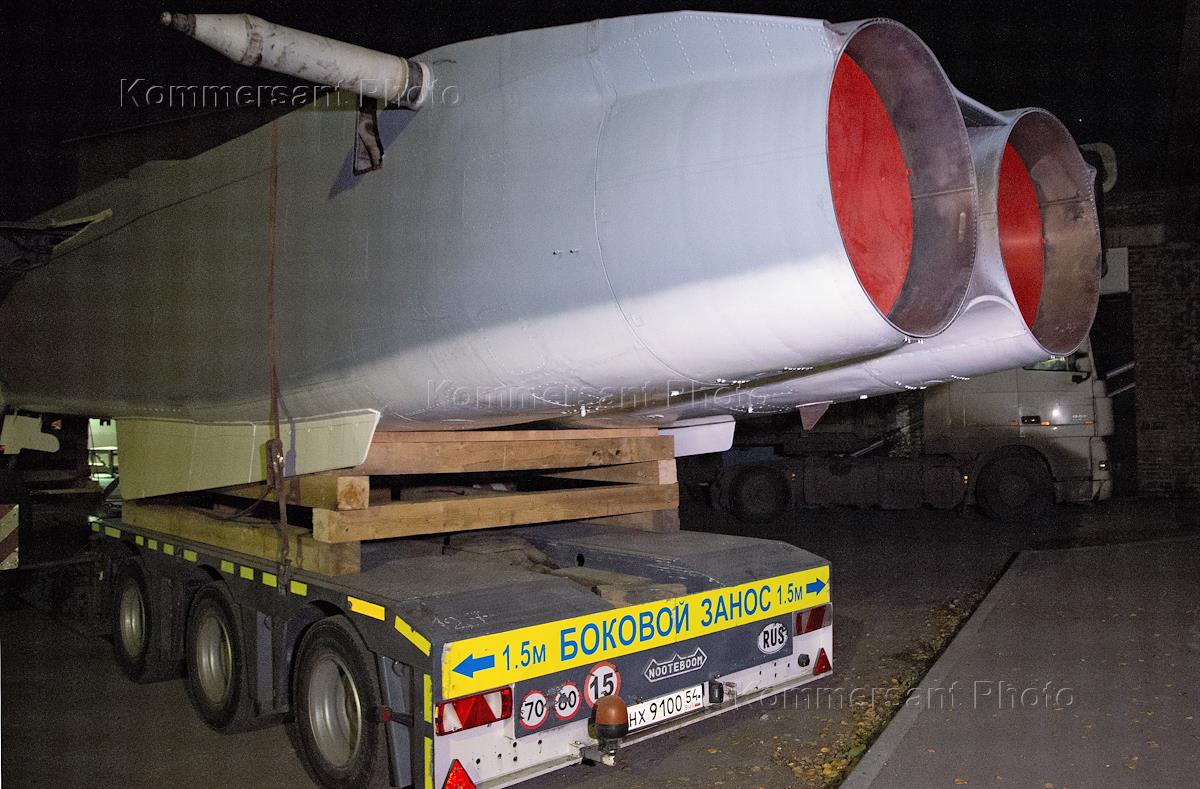 Перевозка реактивного фронтового истребителя-бомбардировщика Су-24 на трейлере с территории…