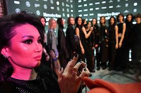Неделя моды Mercedes-Benz Fashion Week Russia. ПОдготовка к показу. Стилист с моделью в гримерке.