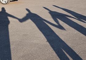 Жанровая фотография. Тени людей, взявшихся за руки.