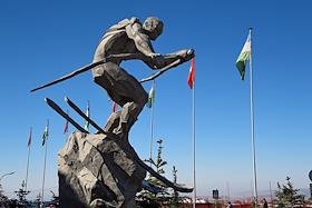 Виды Ташкента. Жанровая фотография. Памятник лыжнику на горнолыжном курорте "Амирсой".