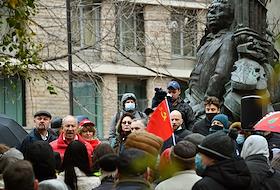 Встреча с депутатами партии КПРФ за отмену электронного голосования и за свободу собраний у памятника Хачатуряну.