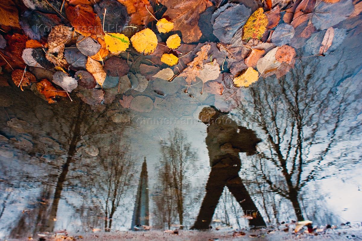 Виды Санкт-Петербурга. Жанровая фотография. Отражение девушки и бизнес-центра "Лахта-центра" в луже.