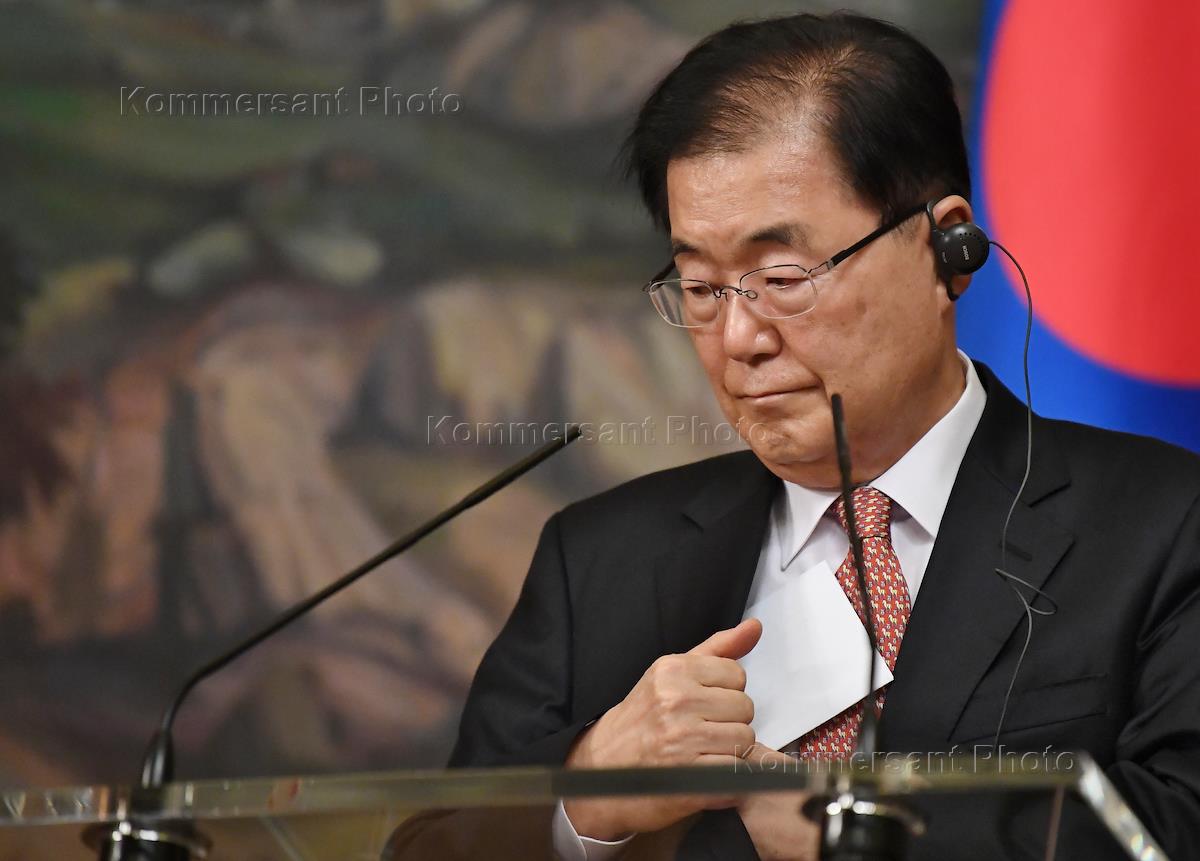 Переговоры Министра иностранных дел России Сергея Лаврова с Министром иностранных дел Республики Корея Чон Ый Ёном в Доме приемов МИД России.