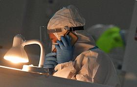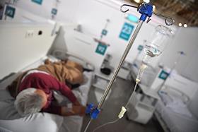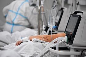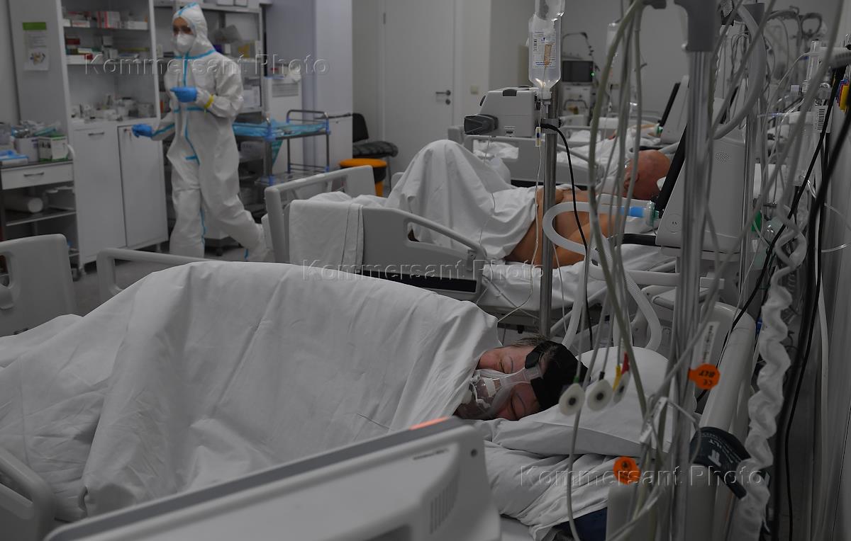 Медицина "Красная зона" для лечения больных с коронавирусной инфекцией COVID-19 в Государственном бюджетном учреждении здравоохранения "Городская клиническая больница №67 имени Л.А. Ворохобова ДЗМ". Резервный госпиталь в ледовом дворце "Крылатское". Жанровая фотография.