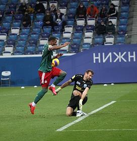 Российская Премьер-Лига (РПЛ). Тинькофф - Чемпионат России по футболу 2021/2022. 13-й тур. Матч между командами "Нижний Новгород" (Нижний Новгород) и "Локомотив" (Москва), на стадионе "Нижний Новгород".