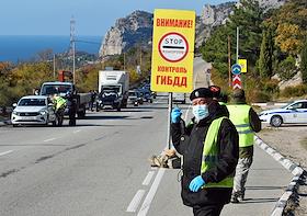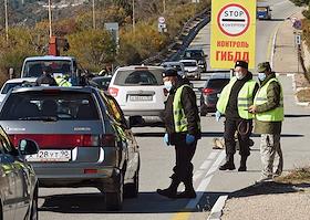 Меры противодействия распространению коронавирусной инфекции COVID-19 в Крыму. Блокпост на въезде в…