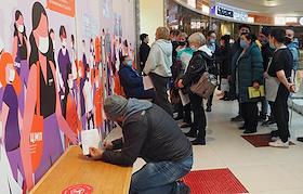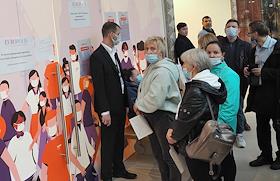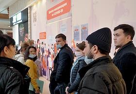 Очередь на вакцинацию от covid-19 в торговом центре "Европолис" в первый день локдауна.