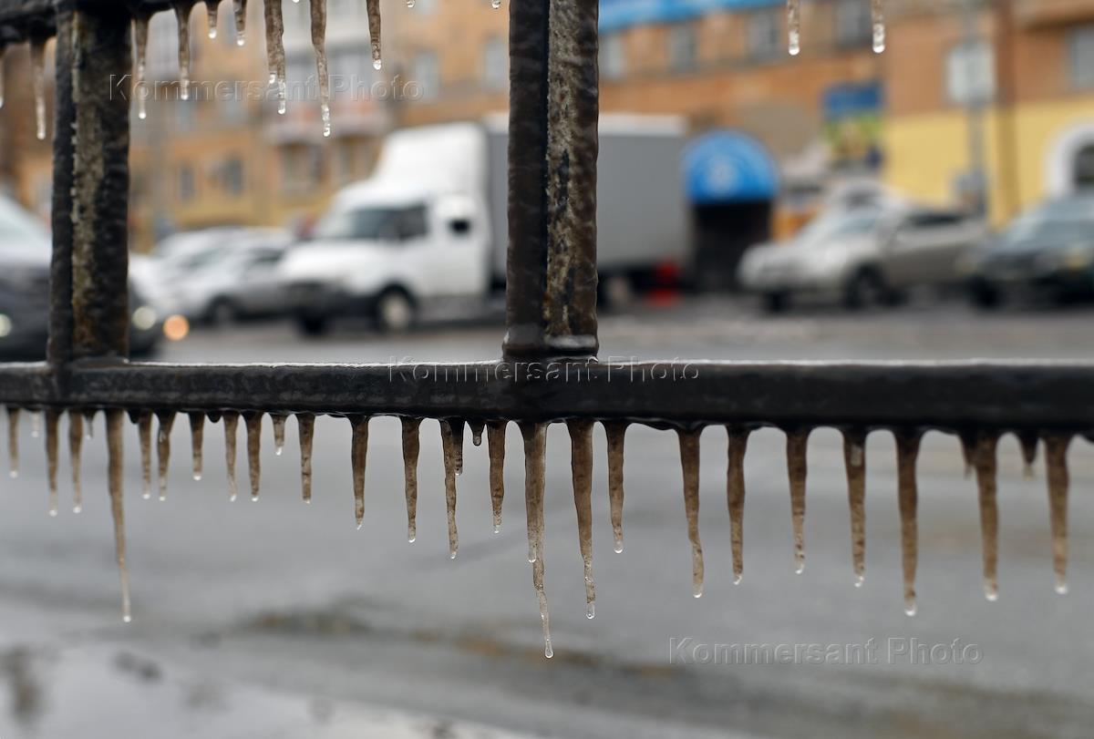 Виды Омска. Сосульки на ограждении .