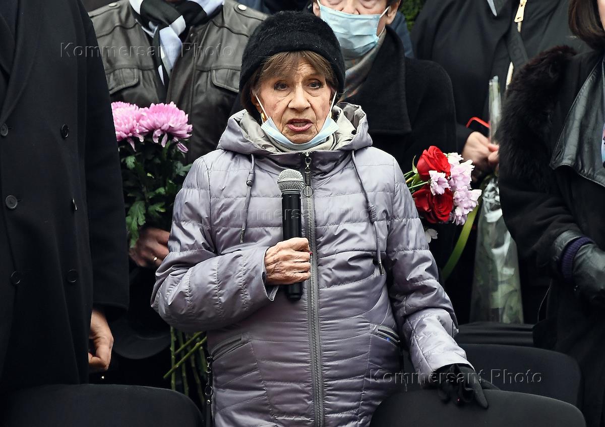 Церемония прощания с диктором телевидения Игорем Кирилловым на Новодевичьем кладбище. Вдова Игоря…