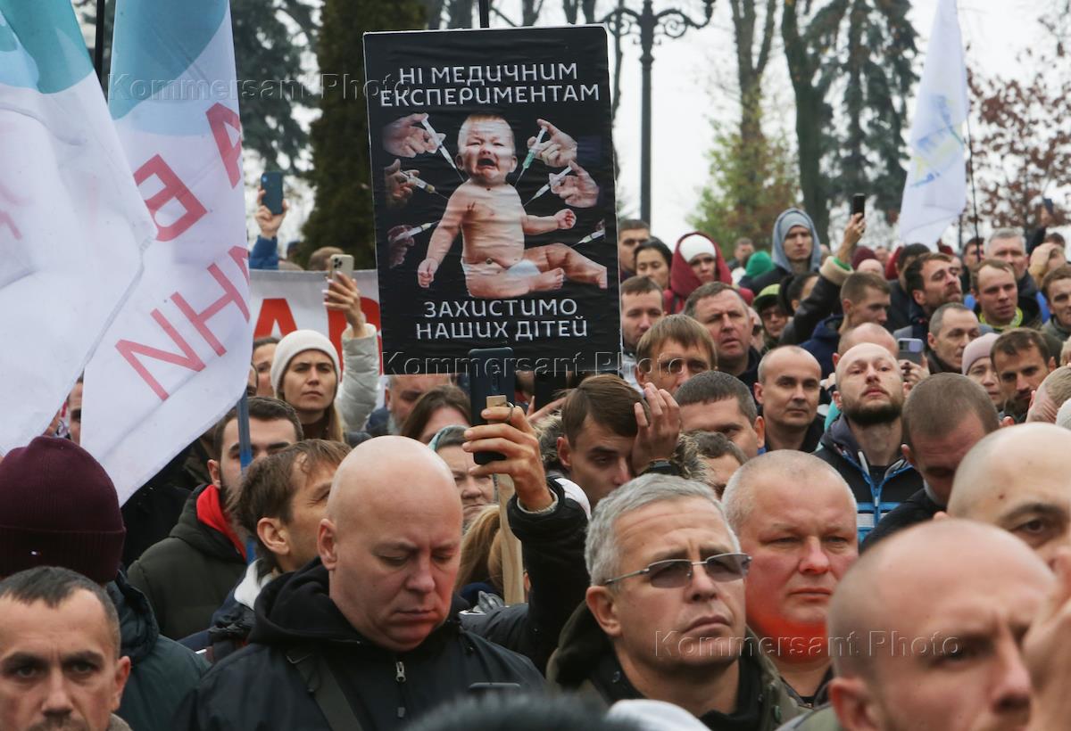 Митинг противников вакцинации от коронавирусной инфекции COVID-19 возле Верховной рады Украины.