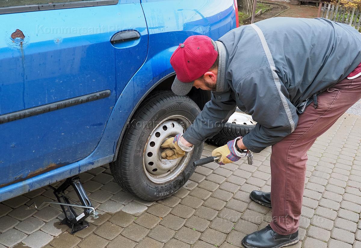 Жанровая фотография. Осень в поселке Новая Ижора. Смена летних колес на зимние.