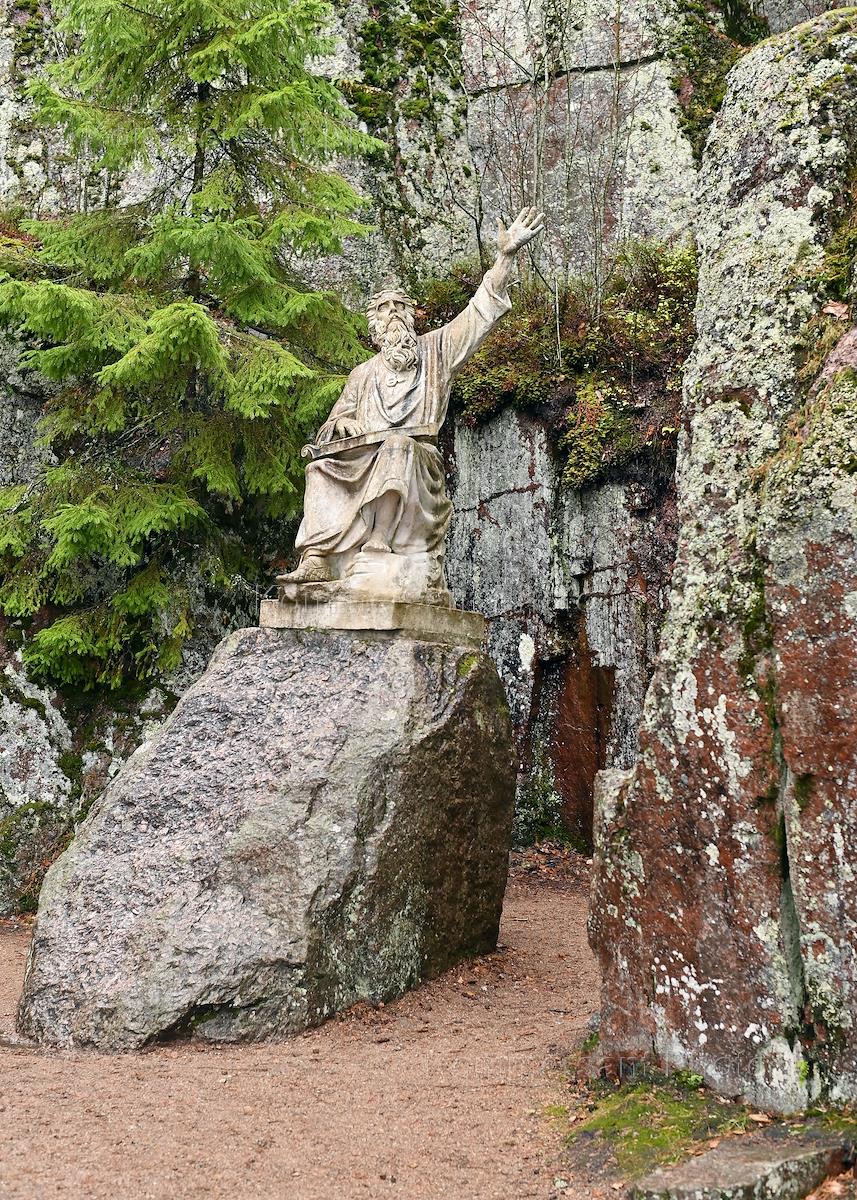 Виды Выборга. Парк Монрепо. Скульптура героя древнего угро-финского эпоса "Калевала," рунопевца…