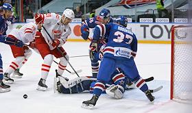 КХЛ. Регулярный чемпионат. Матч между командами СКА (Санкт-Петербург) и Спартак (Москва) в Ледовом дворце.