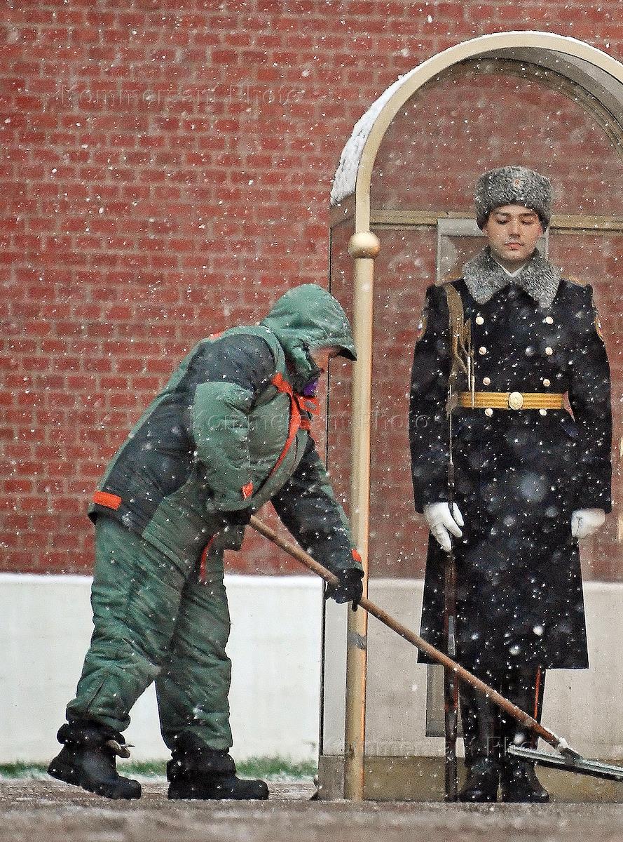 Виды Москвы во время снегопада. Жанровая фотография. Уборка снега в Александровском саду.