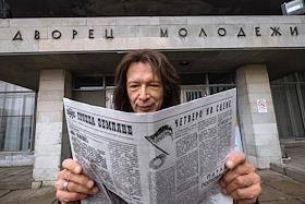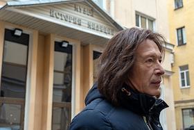 Экскурсия по знаковым адресам ленинградского ВИА "Земляне". Музыкант Андрей Храмов (справа) перед…