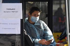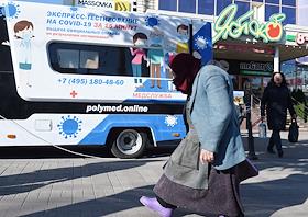 Ситуация с COVID-19 в Крыму. Жанровая фотография. Автофургон, где проводится экспресс-тестирование…