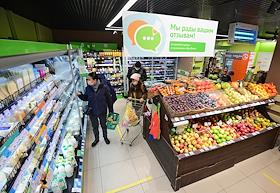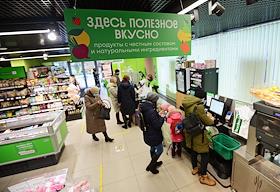 Супермаркет сети магазинов "ВкусВилл" на улице Михалковская. Покупатели в супермаркете.