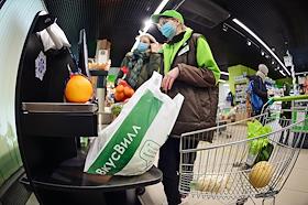 Супермаркет сети магазинов "ВкусВилл" на улице Михалковская. Покупатели во время расчета на…
