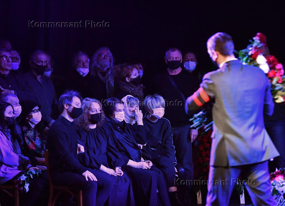 Церемония прощания с актером Валерием Гаркалиным в Учебном театре Российского института театрального искусства.