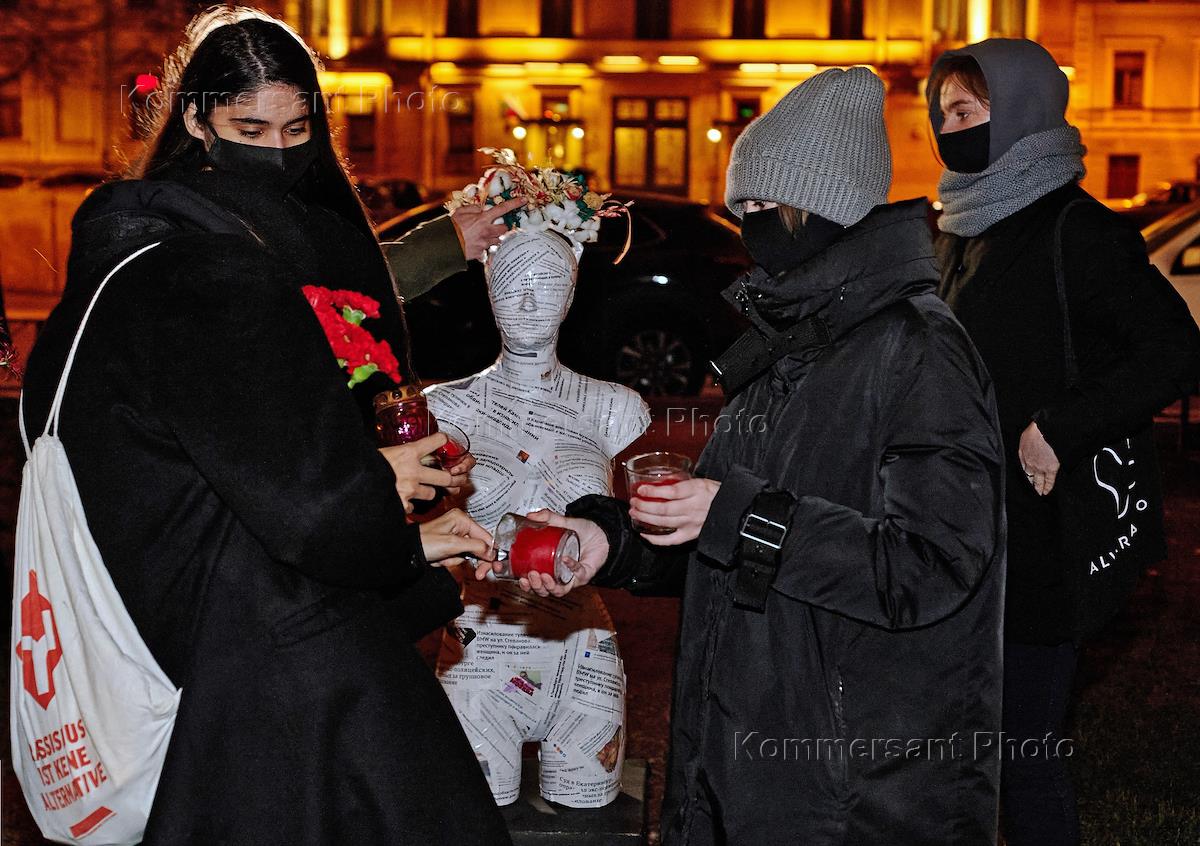 Акция фемактивисток, приуроченная к деню борьбы с гендерным насилием, прошла на набережной Мойки в Санкт-Петербурге.