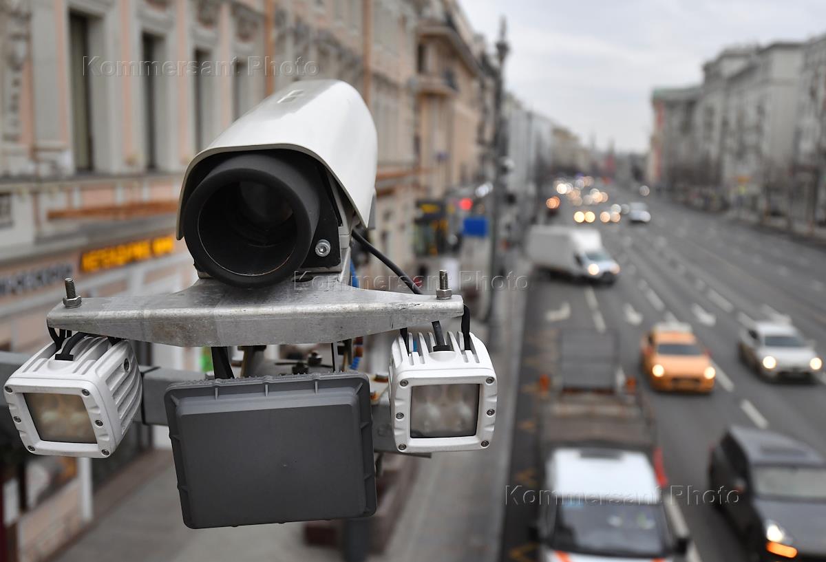 Экономика и бизнес Жанровые фотографии. Установка сотрудниками Центра организации дорожного движения (ЦОДД) новых комплексов (камер) автофиксации нарушений ПДД под названием "Стрелка+" на улице Тверская.