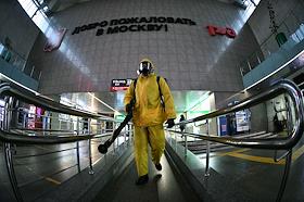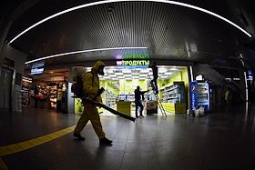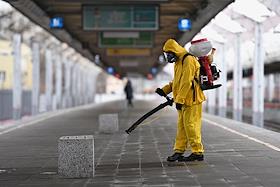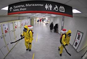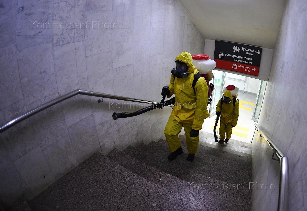 Дезинфекция Ленинградского вокзала и прилегающей к нему территории.