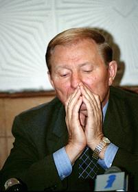 Президент Украины Леонид Кучма на пресс-конференции, посвященной аварии на шахте имени Засядько.