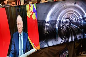 Президент России Владимир Путин во время церемонии запуска пассажирского движения на новых станциях…