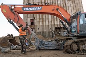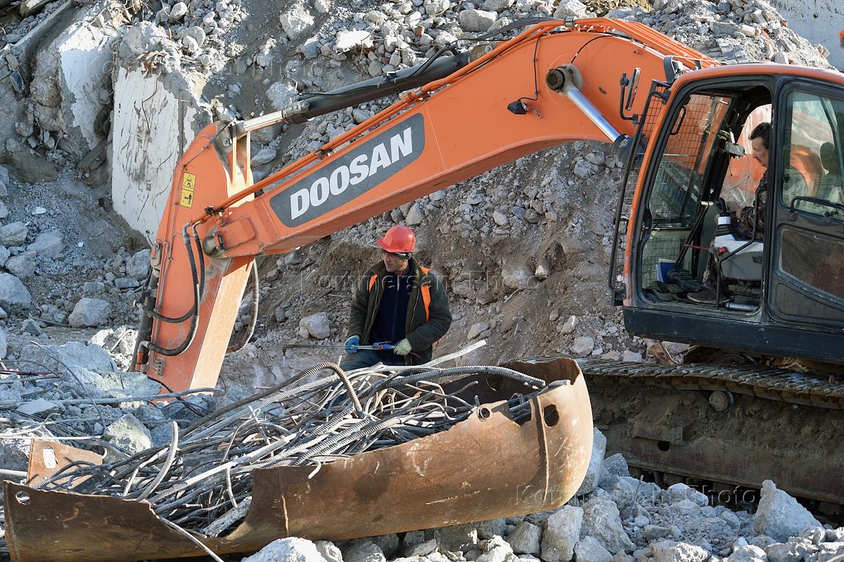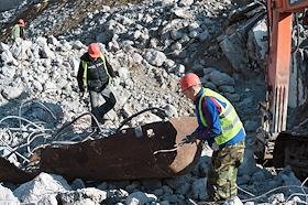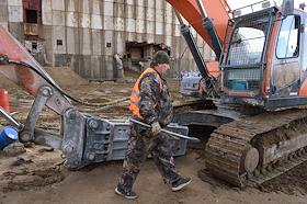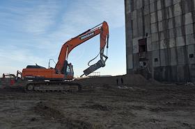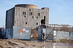 Снос недостроенной атомной электростанции в Щелкино. Демонтаж здания реакторного зала.