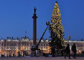 Установка новогодней ели на Дворцовой площади.