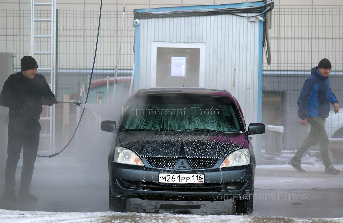 Жанровая фотография. Мытье автомобилей на автомойке с самообслуживанием.