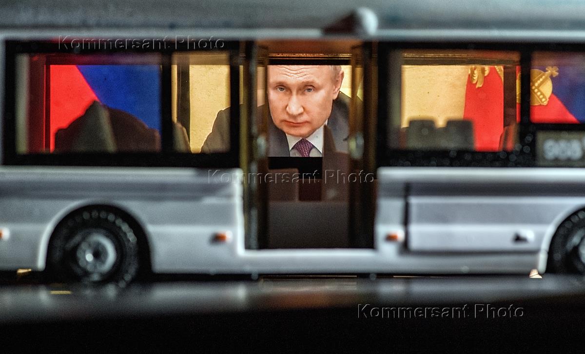 Жанровая фотография. Трансляция совещания с членами правительства России, которое провел президент…