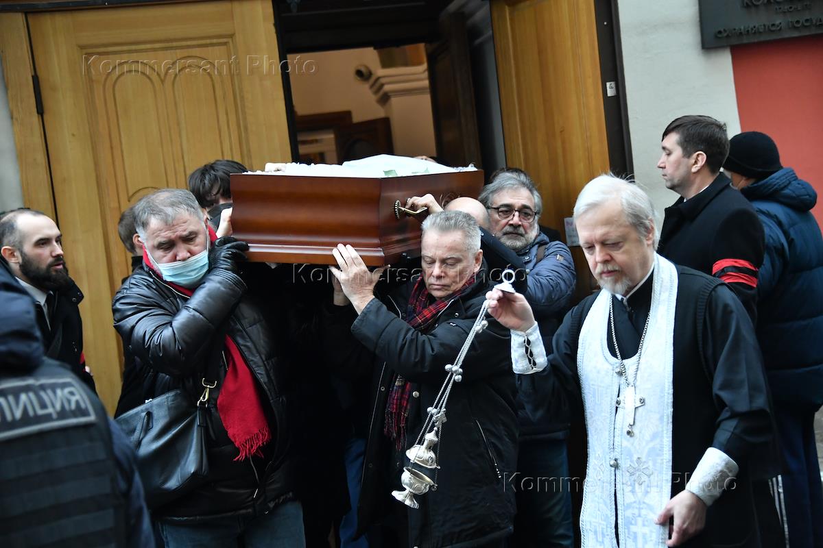 Отпевание режиссера Сергея Соловьева в церкви Иоанна Богослова.