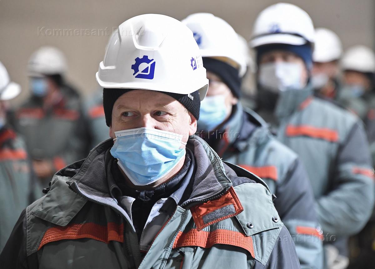 Церемония запуска Тайшетского алюминиевого завода имени П.А. Столыпина компании "Русал". Рабочие во…