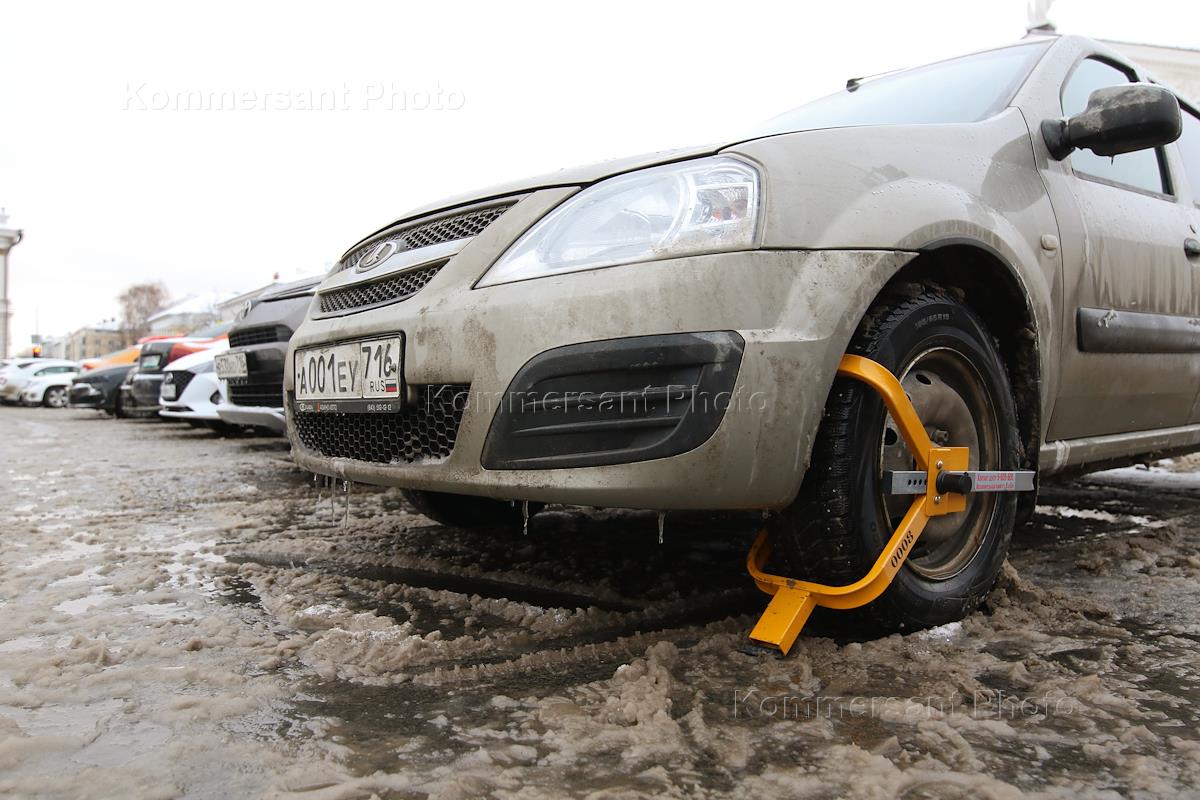 Жанровая фотография. Блокиратор колес на колесе автомобиля.