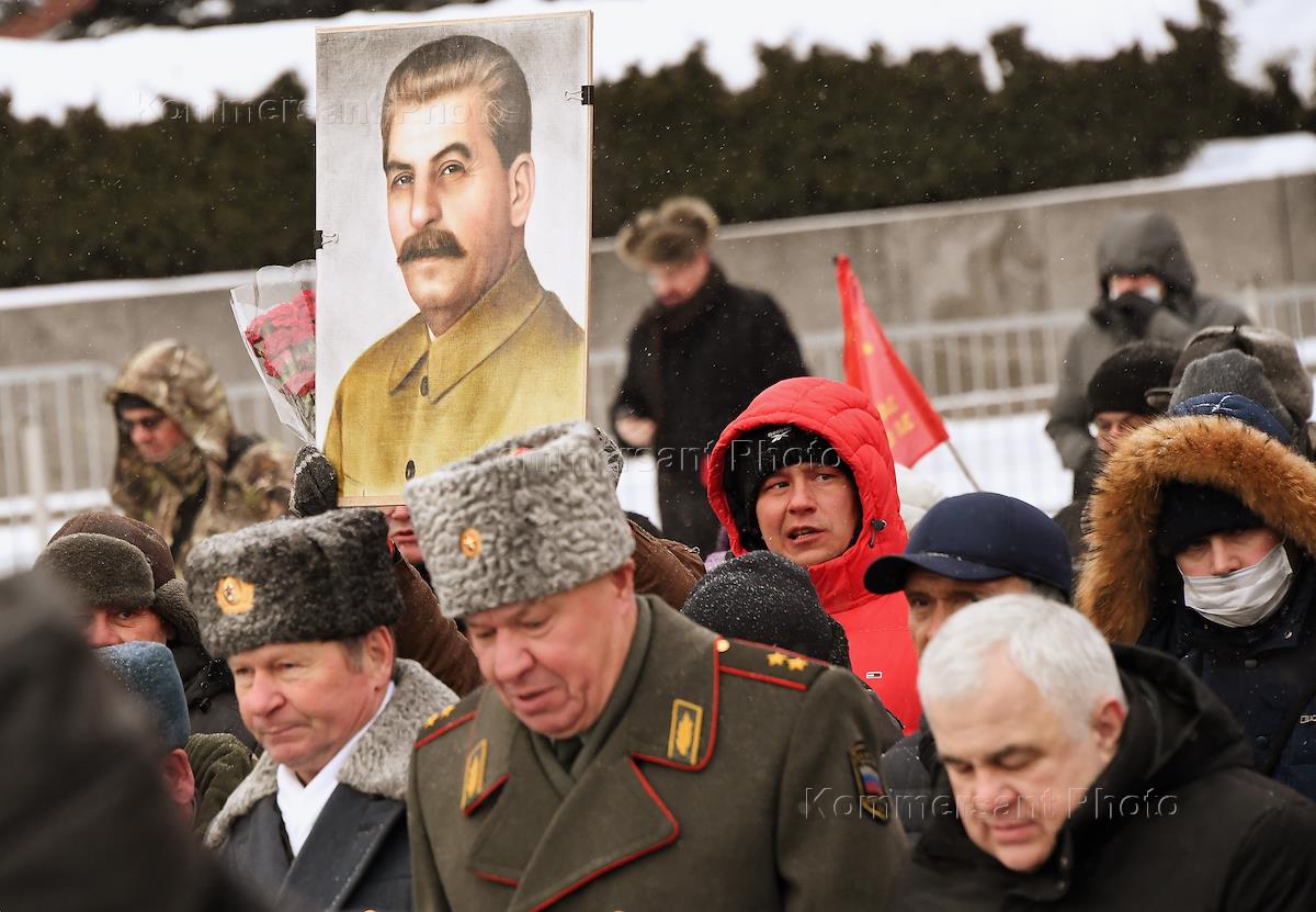 Церемония возложения венков и цветов к могиле Иосифа Сталина у Кремлевской стены в день его 142-летия.