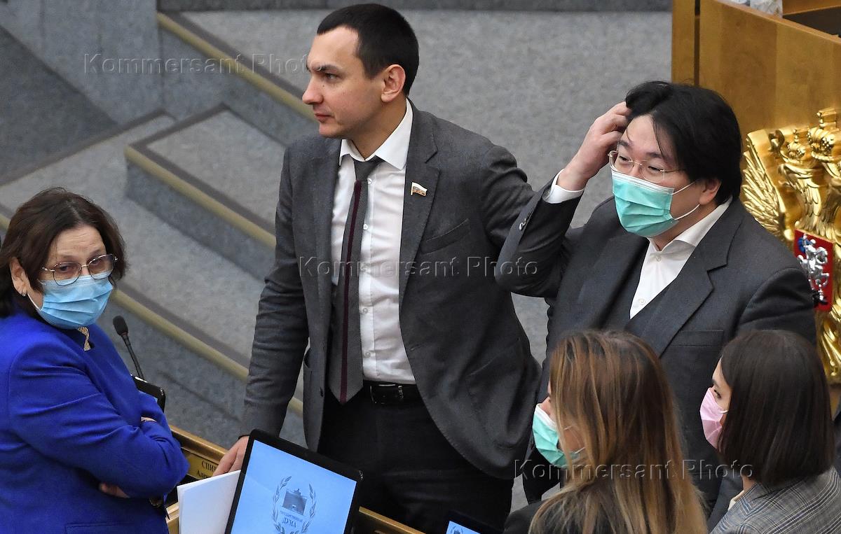 Последнее пленарное заседание осенней сессии Государственной думы (ГД) России. Слева направо: член…