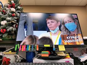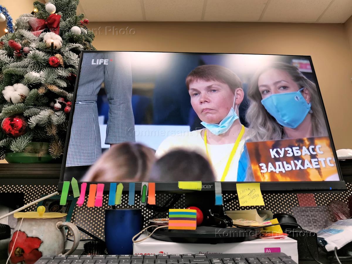 Коллективный просмотр работников офиса большой пресс-конференции президента России Владимира Путина.