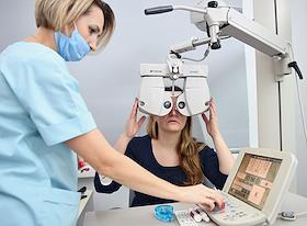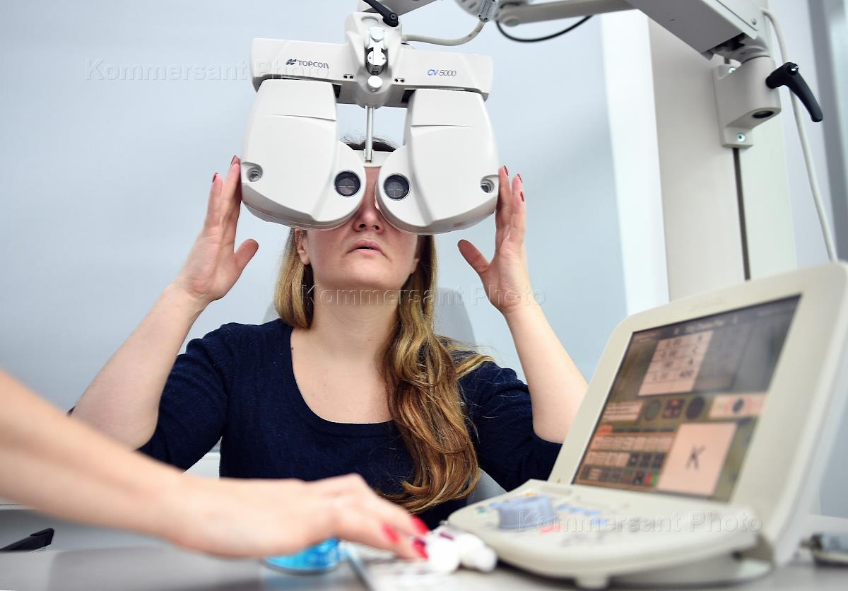 Жанровая фотография. Пациентка на осмотре у офтальмолога.