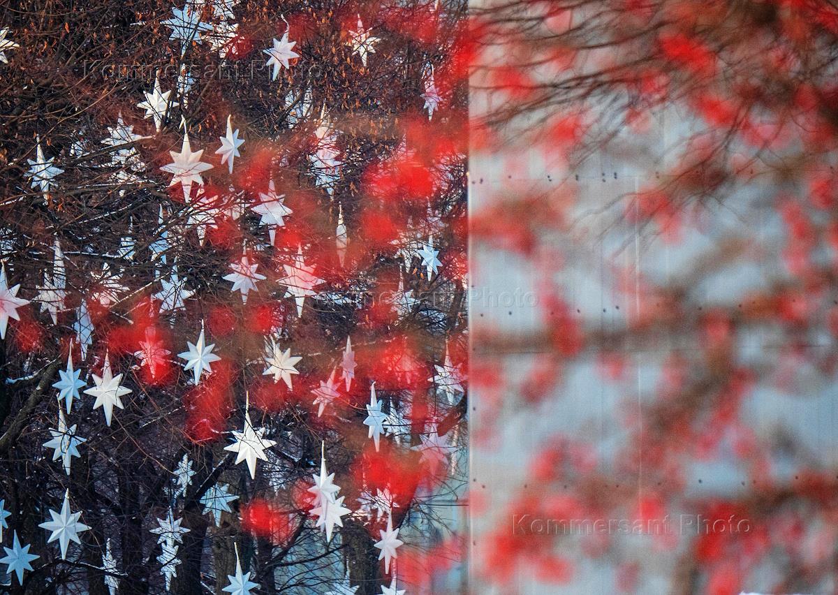 Виды Санкт-Петербурга. Жанровая фотография. Украшения на новогодней елке в парке.