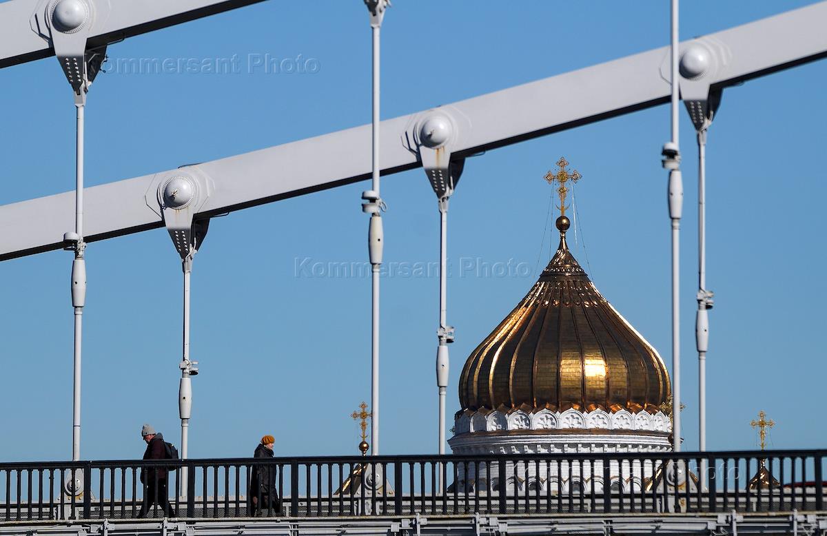 Виды Москвы. Жанровая фотография. Крымский мост и купол храма Христа Спасителя.