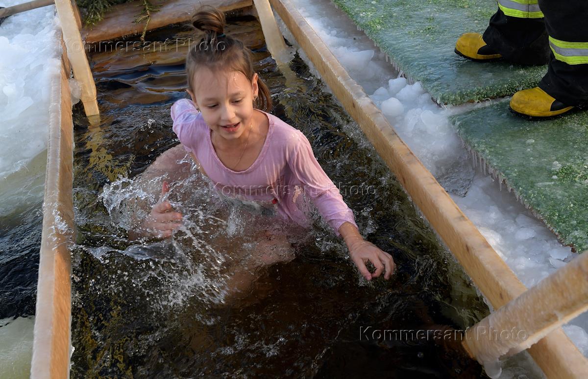 Праздник Крещения Господня. Крещенские купания на Клязьминском водохранилище возле Троицкого храма в селе Троицкое.