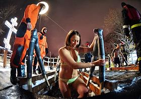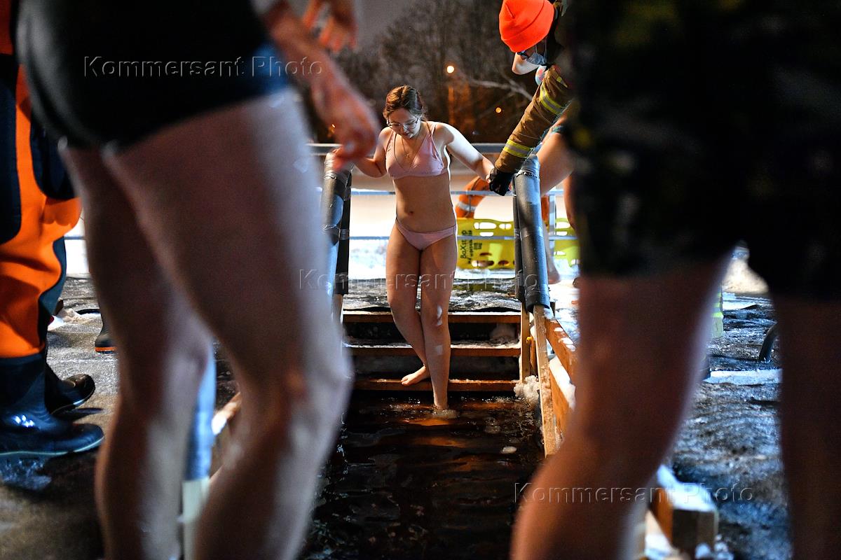 Праздник Крещения Господня. Крещенские купания в Нижнем Майском пруду (Олений пруд № 5) в парке…