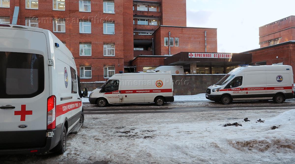Очередь карет скорой помощи возле приёмного отделения Покровской больницы.