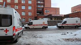 Очередь машин скорой помощи возле приемного отделения Покровской больницы.