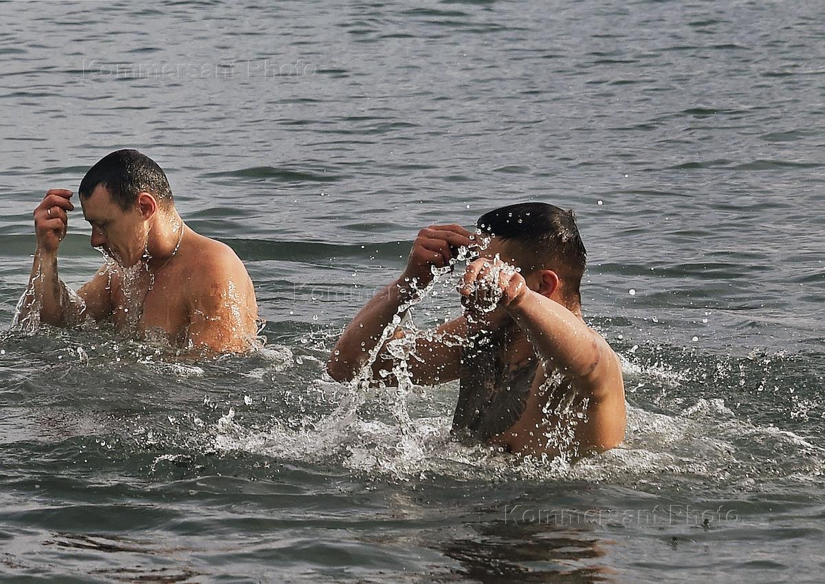 Праздник Крещения Господня. Крещенские купания в Черном море на пляже Алушты. Сотрудники…