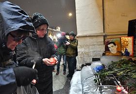Общество День памяти журналистки "Новой газеты" Анастасии Бабуровой и адвоката-правозащитника Станислава Маркелова. Возложение цветов на месте гибели на Пречистенке.